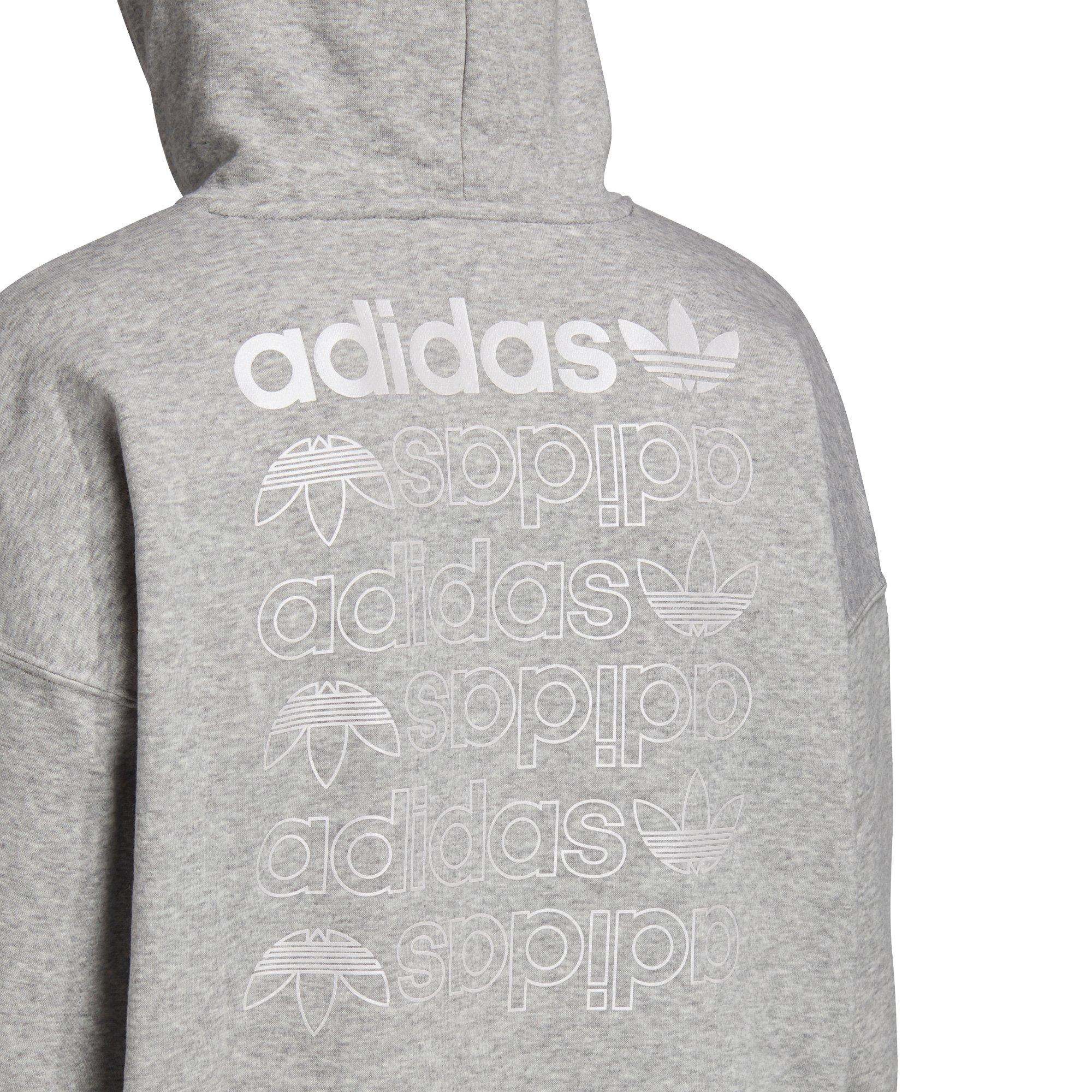 Adidas Large Trefoil Logo Cropped Long Sleeve Hoodie In Medium Grey Heather White
