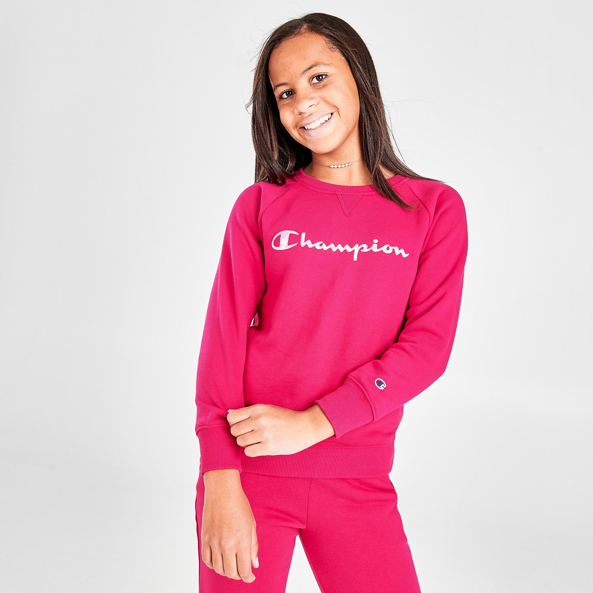 Girls Champion Tie Dye Script Fleece Crew Sweatshirt Finish Line