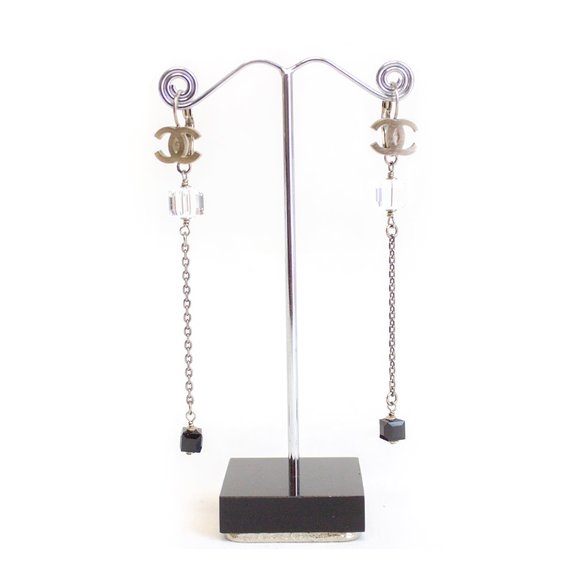 Chanel Crystal Letter Logo Statement Dangle Earrings Dearluxe