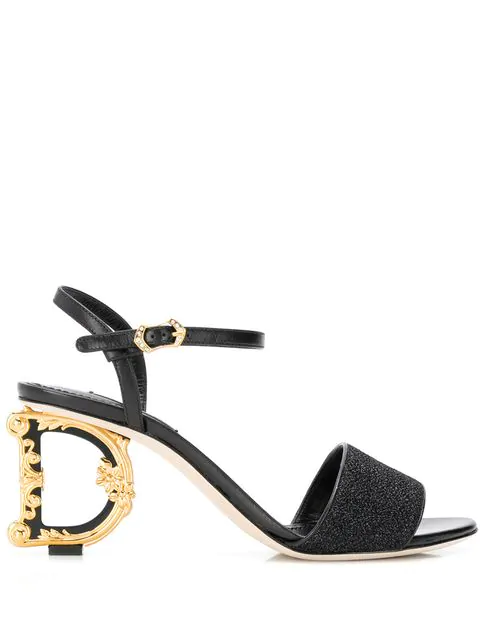 Dolce Gabbana Black 105 Dg Baroque Logo Heel Leather Sandals Browns