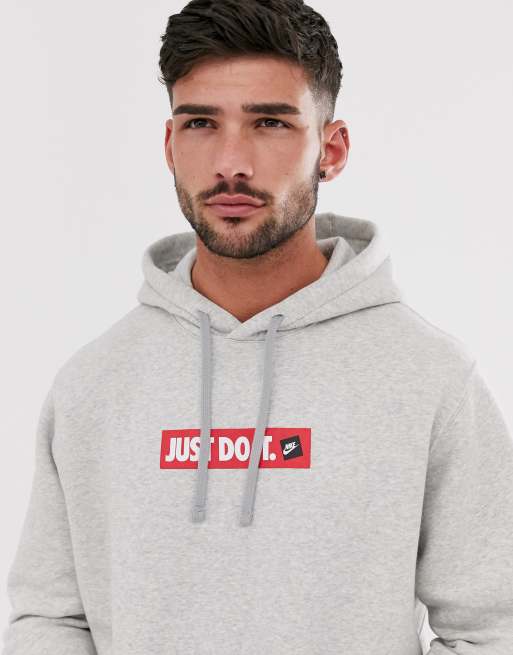 Grey Nike Hoodie Red Logo
